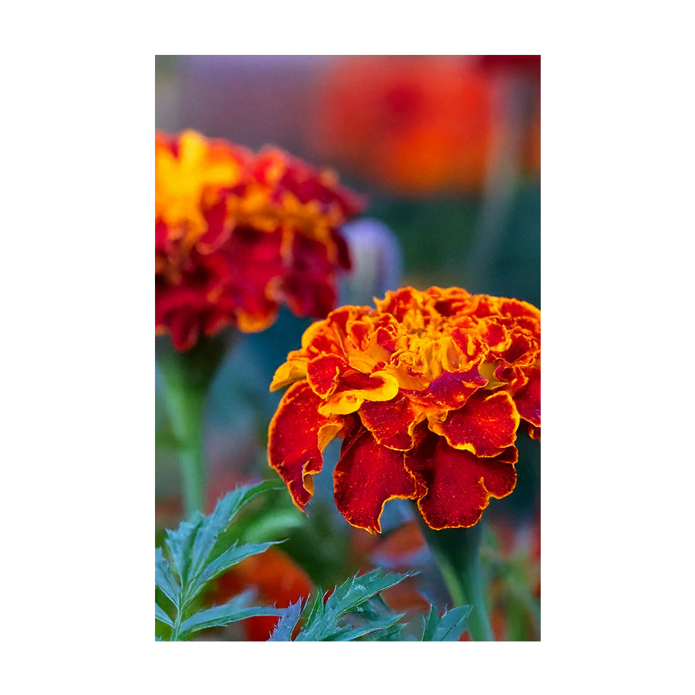 French Marigolds (Tagetes patula) are vibrant, easy-to-grow annual flowers known for their bright blooms and pest-repellent properties. They come in shades of yellow, orange, red, and bi-color varieties, adding cheerful color to flower beds, containers, and vegetable gardens. Beyond their beauty, French Marigolds are valued for their ability to deter pests, making them an excellent companion plant for vegetables and herbs. French Marigolds are low-maintenance, vibrant flowers that enhance gardens with their cheerful blooms and pest-repellent properties. Their ability to deter pests, attract pollinators, and improve soil health makes them an excellent choice for flower beds, vegetable gardens, and containers.